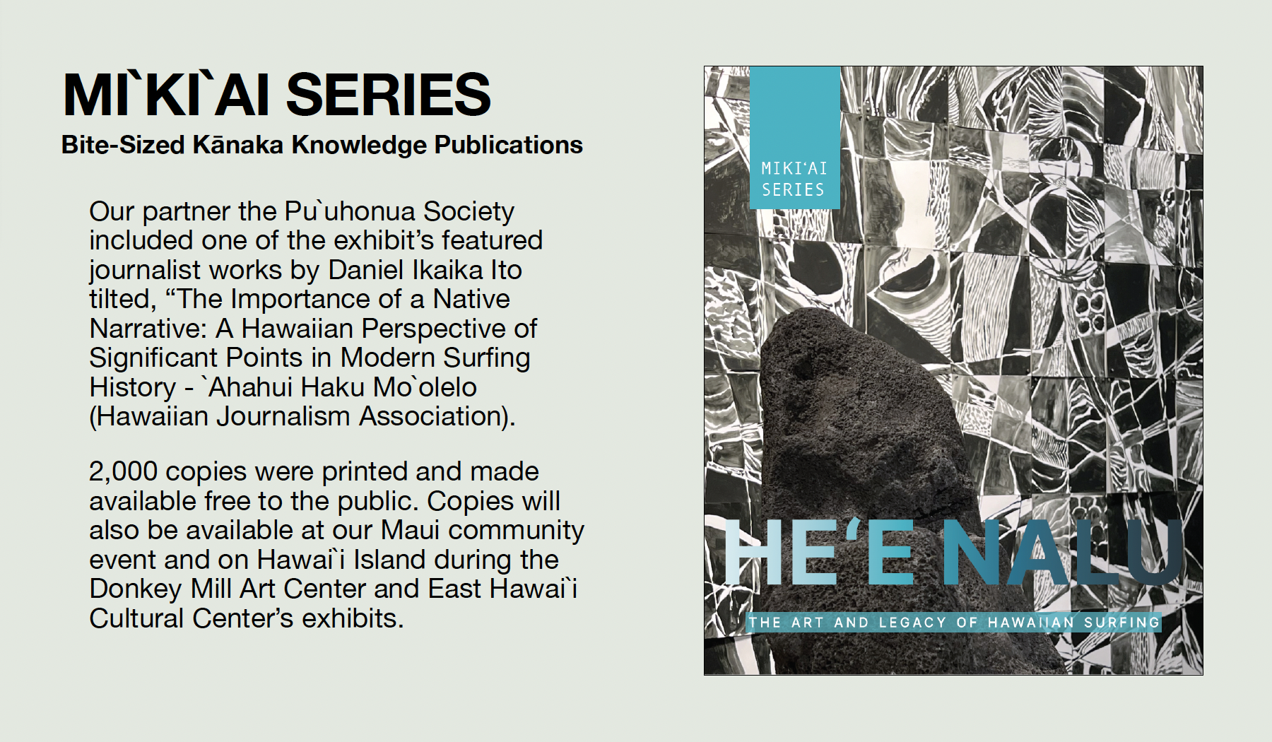 In partnership with some of Hawaii’s leading art organizations, a smaller iteration of He‘e Nalu: The Art and Legacy of Hawaiian Surfing was possible on O‘ahu, Maui and Hawai‘i Island.
