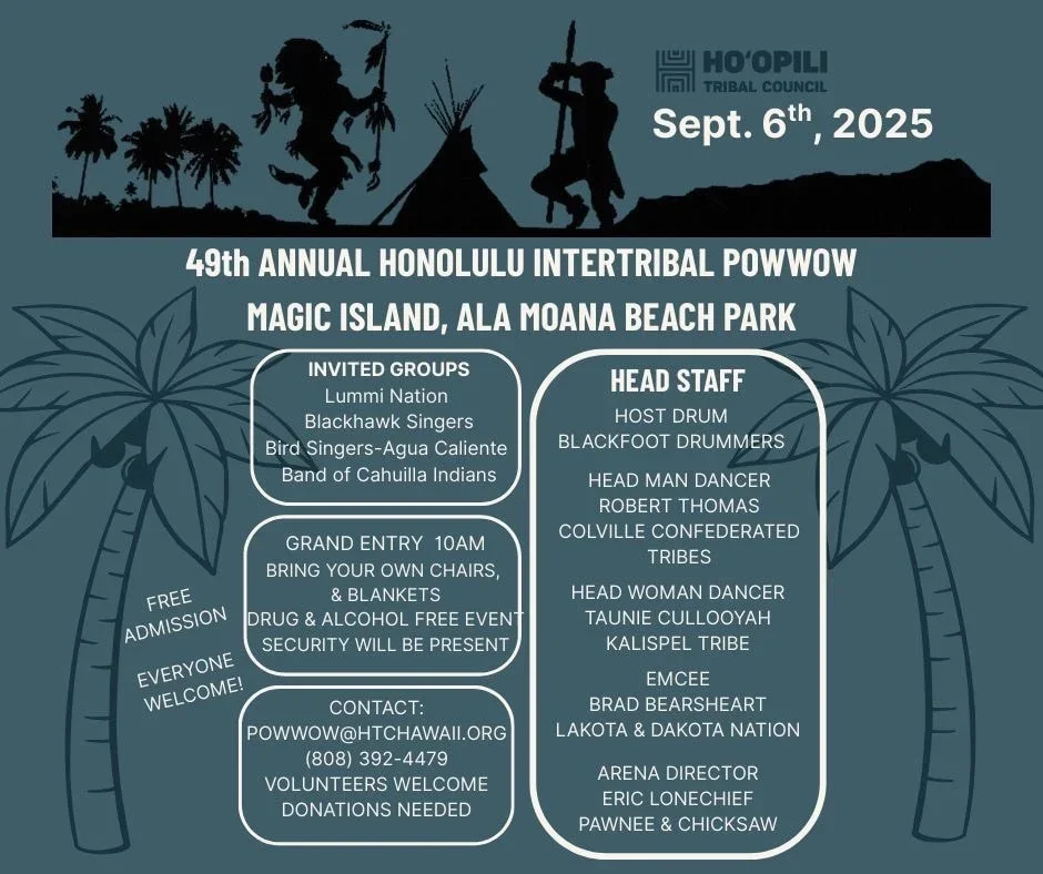 9am – Native Hawaiian Blessing, music & performance, followed by Grand Entry at 10am.