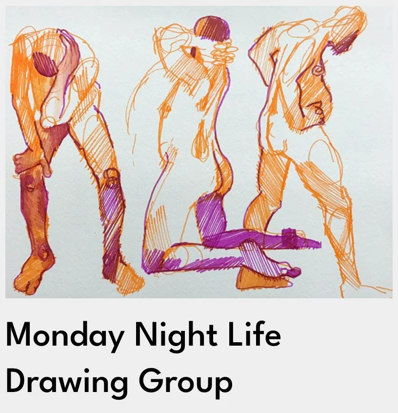 Monday Night Life Drawing Group, a weekly artist-run uninstructed drawing session with live models, music, and a great collaborative, creative atmosphere.