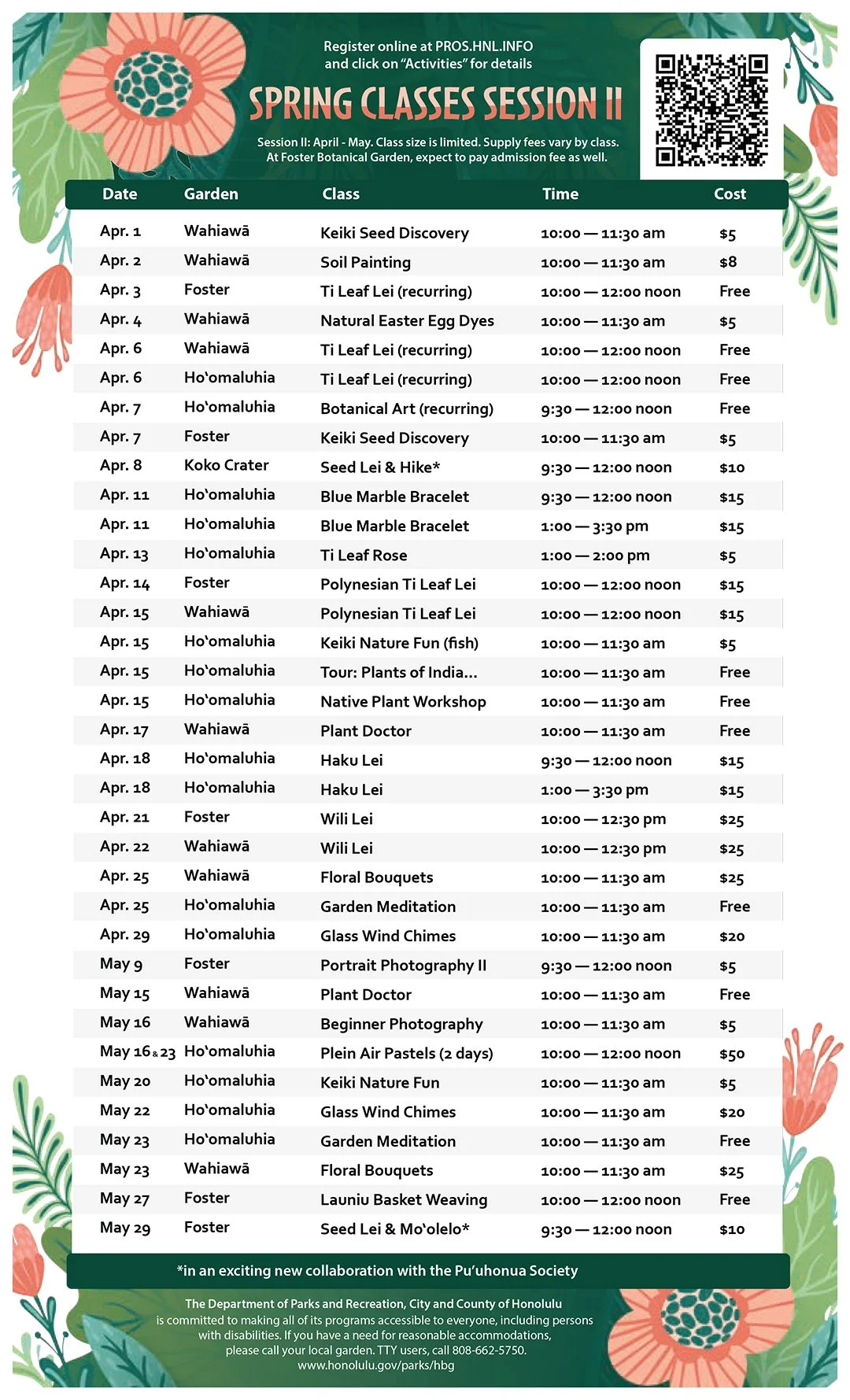 New classes at Honolulu Botanical Gardens. Spots are limited and going fast.